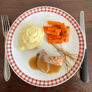 Filtrez le jus et faites-le réduire d’1/3. Rectifiez l’assaisonnement en sel et poivre. Vous pouvez éventuellement crémez légèrement la sauce.