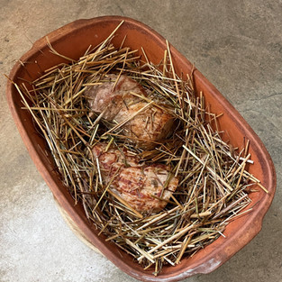 Rincez et essorez le foin. Réservez-en 30gr. Placez-en une bonne couche dans le fond de la cocotte. Placez le filet dessus, ajoutez le reste de l’huile et 2 cuillères à soupe d’eau. Recouvrez de foin et fermez la cocotte avec son couvercle.